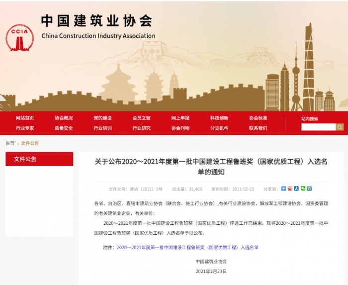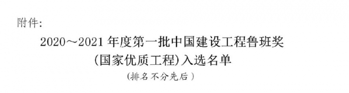 2月23日,中國建筑業(yè)協(xié)會(huì)公布了2020~2021年度第一批中國建設(shè)工程魯班獎(jiǎng)(國家優(yōu)質(zhì)工程)入選名單。